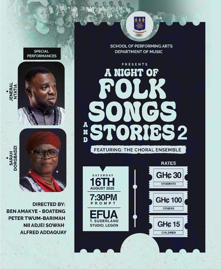 We are excited to invite you to A Night of Folk Songs & Stories 2 โ an evening of vibrant music, rich storytelling, and plenty of laughter with the Choral Ensemble of the University of Ghana.